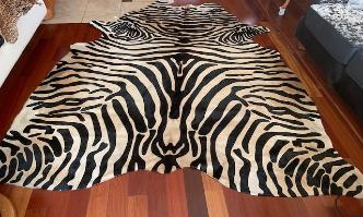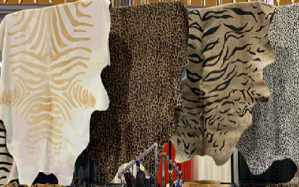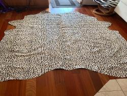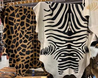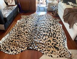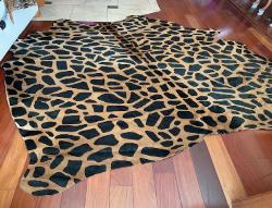 Our Designer Series Rugs from Brazil are genuine cow hides with the hair on that has an exotic animal print. 6'x7' average size. However size will vary with each rug. If these are to large we also offer calf skins from Peru with exotic animal print designs |